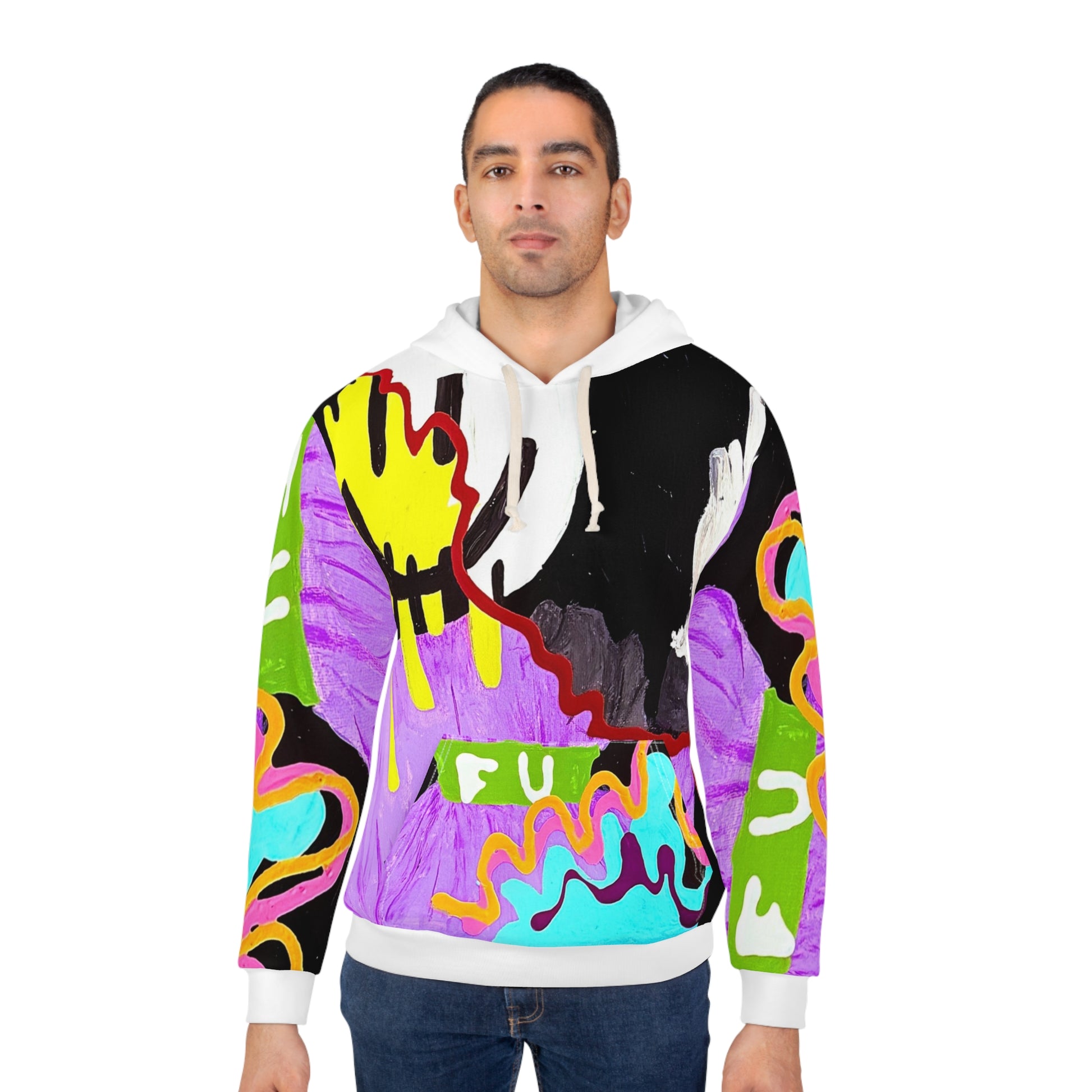 Bold Artistic Unisex Pullover Hoodie, Colorful Graphic Sweatshirt, Streetwear Fashion, Unique Gift for Creatives, Casual Everyday Wear